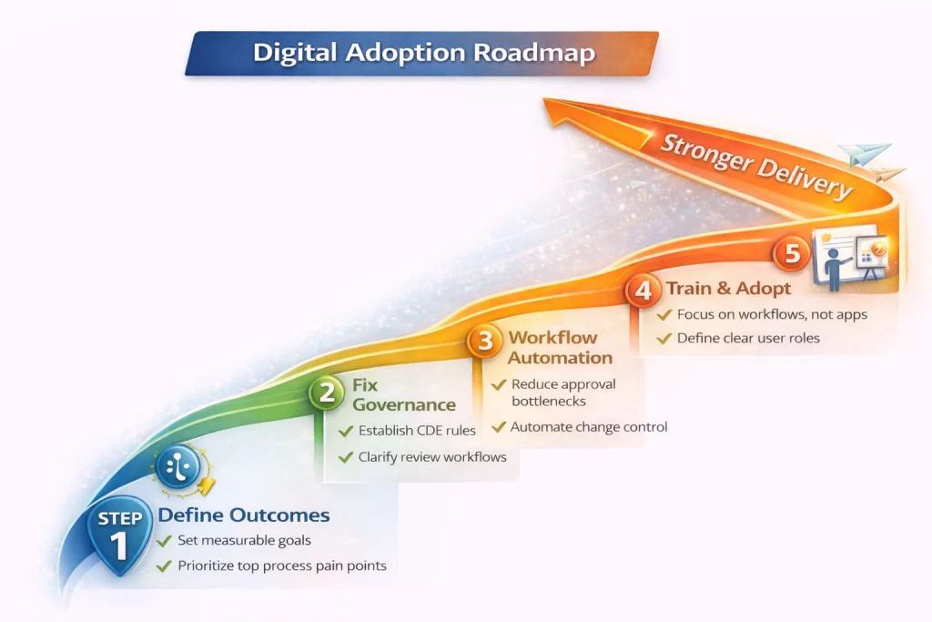 Most failures are adoption failures – unclear roles, weak standards, inconsistent data entry, and no governance.
