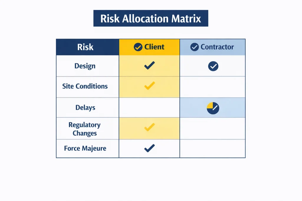 The question isn’t whether risks exist. It’s who bears the financial and schedule consequences.